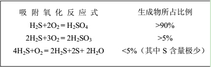 當廢氣進入活性炭光氧一體機凈化設備內時,先經(jīng)過活性炭學反應過程,活性炭 促成 氧化反應能力較強,在吸附過程中,活性炭將 H2S 與氧都吸附在其表面上,發(fā)生氧化作用生成 90%以上的 H2SO4 和少量的 H2SO3 和 S(如下表)。